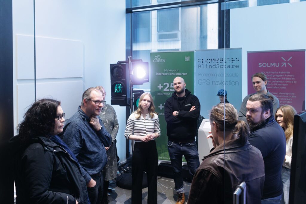SOLMU Showroomissa esiteltiin demopäivänä 21.1. ratkaisuja, jotka helpottavat näkövammaisten itsenäistä liikkumista kaupunkiympäristössä.🚦
